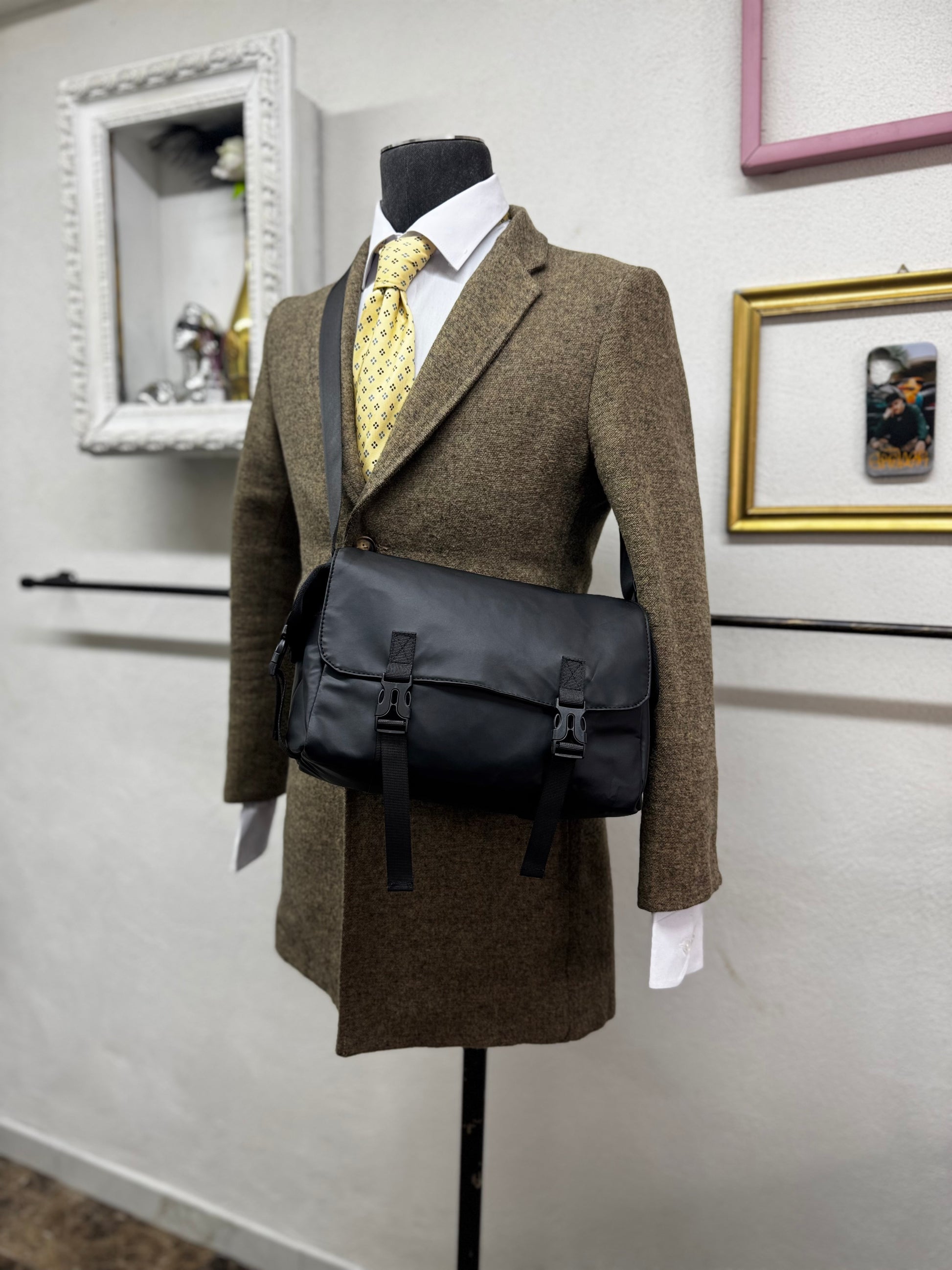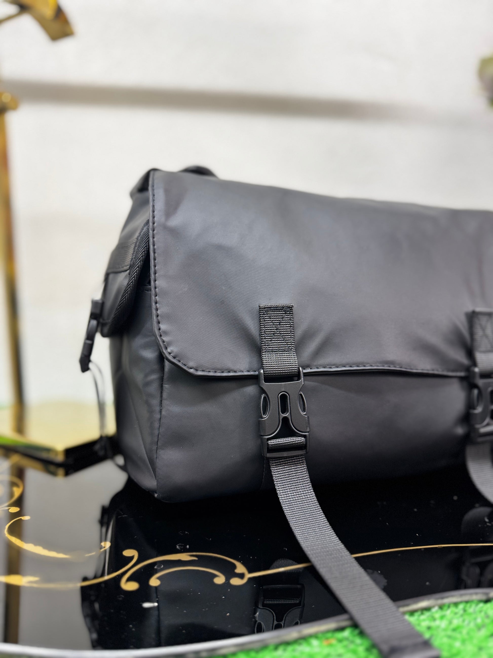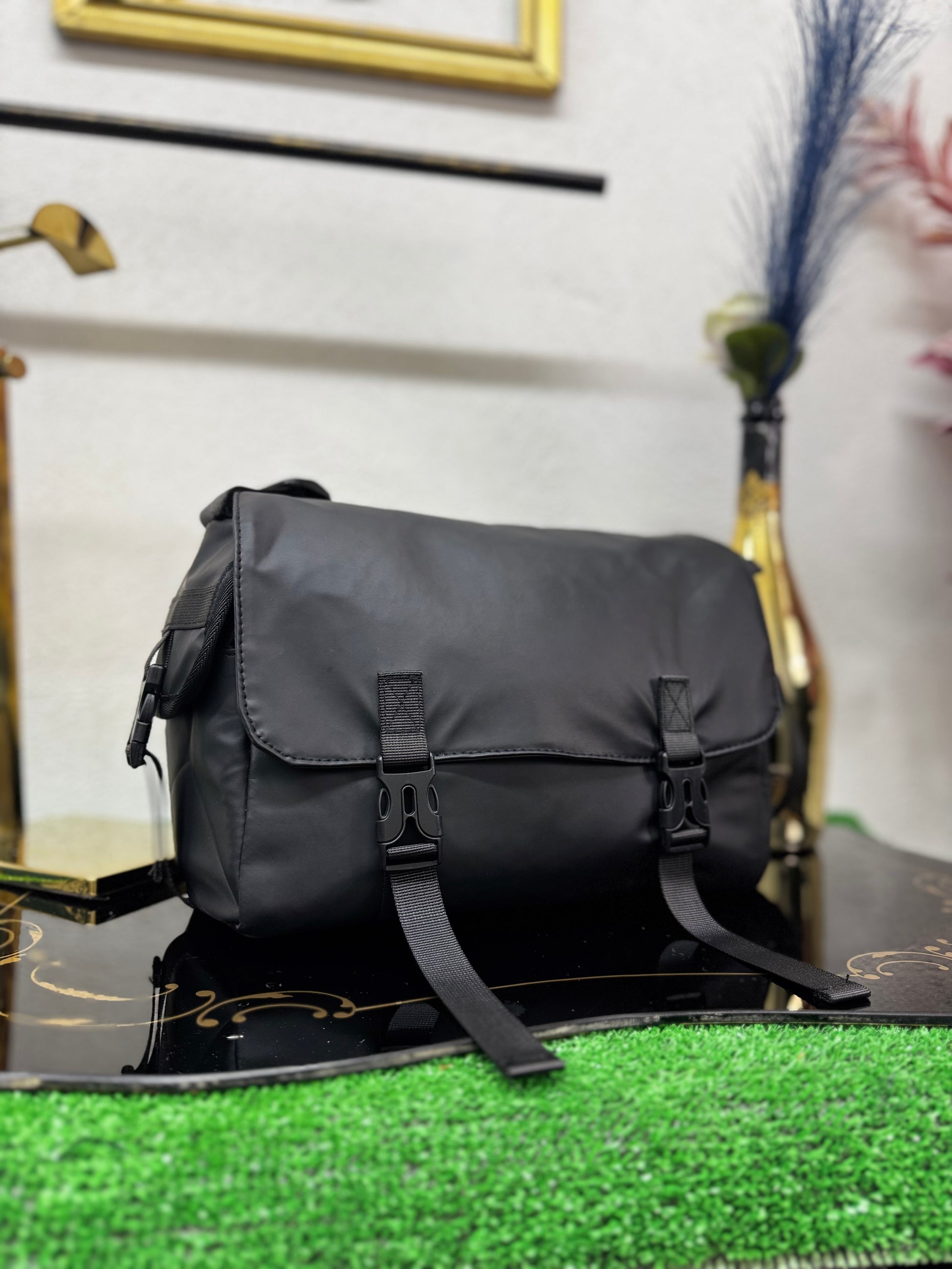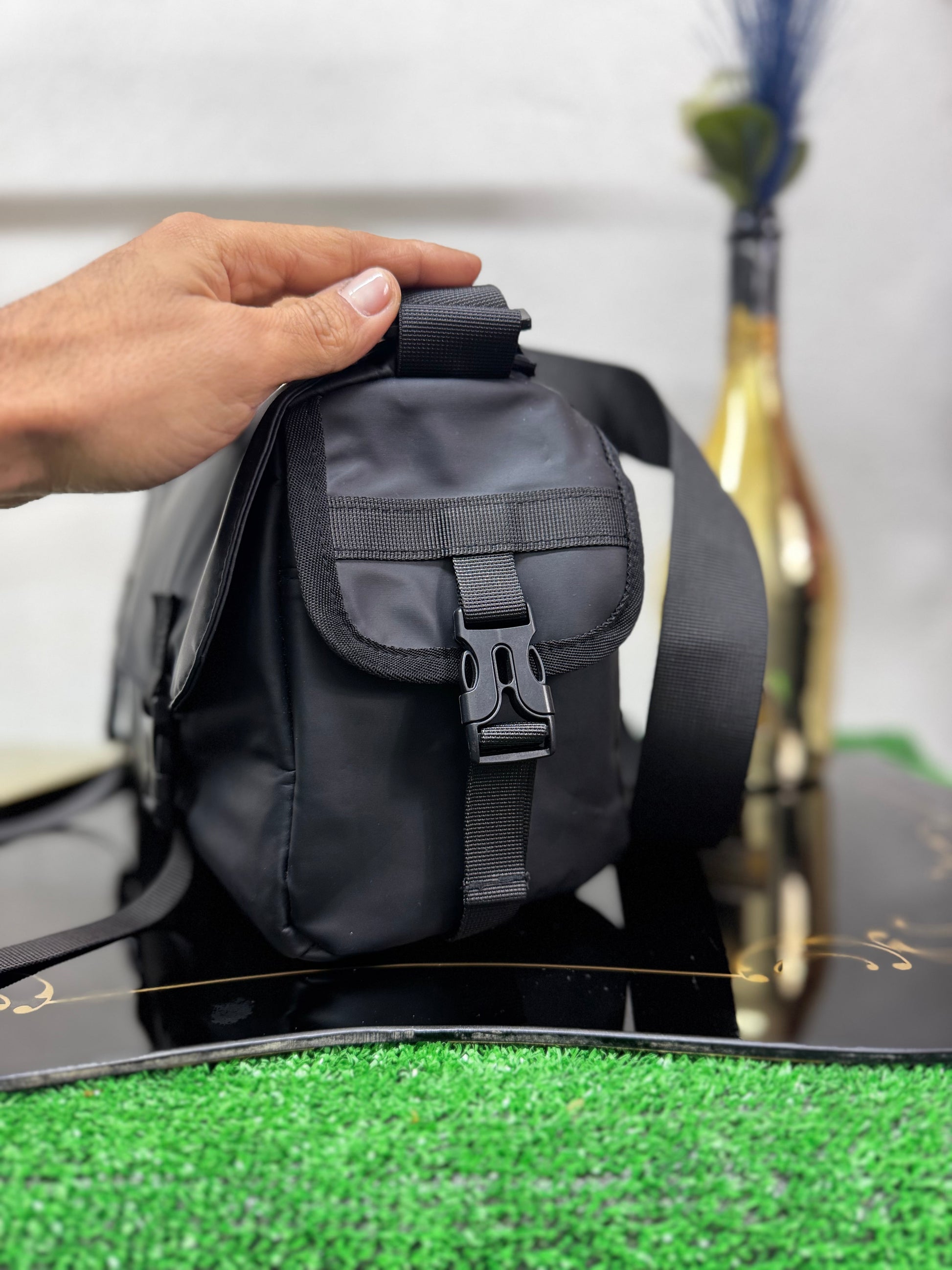 Realizzata in tessuto tecnico premium dal finish opaco, presenta una struttura compatta ma solida, studiata per mantenere la forma nel tempo e offrire una sensazione di leggerezza e praticità. La patta frontale con doppia clip dona carattere e sicurezza, mentre la chiusura con zip interna protegge il contenuto con discrezione.