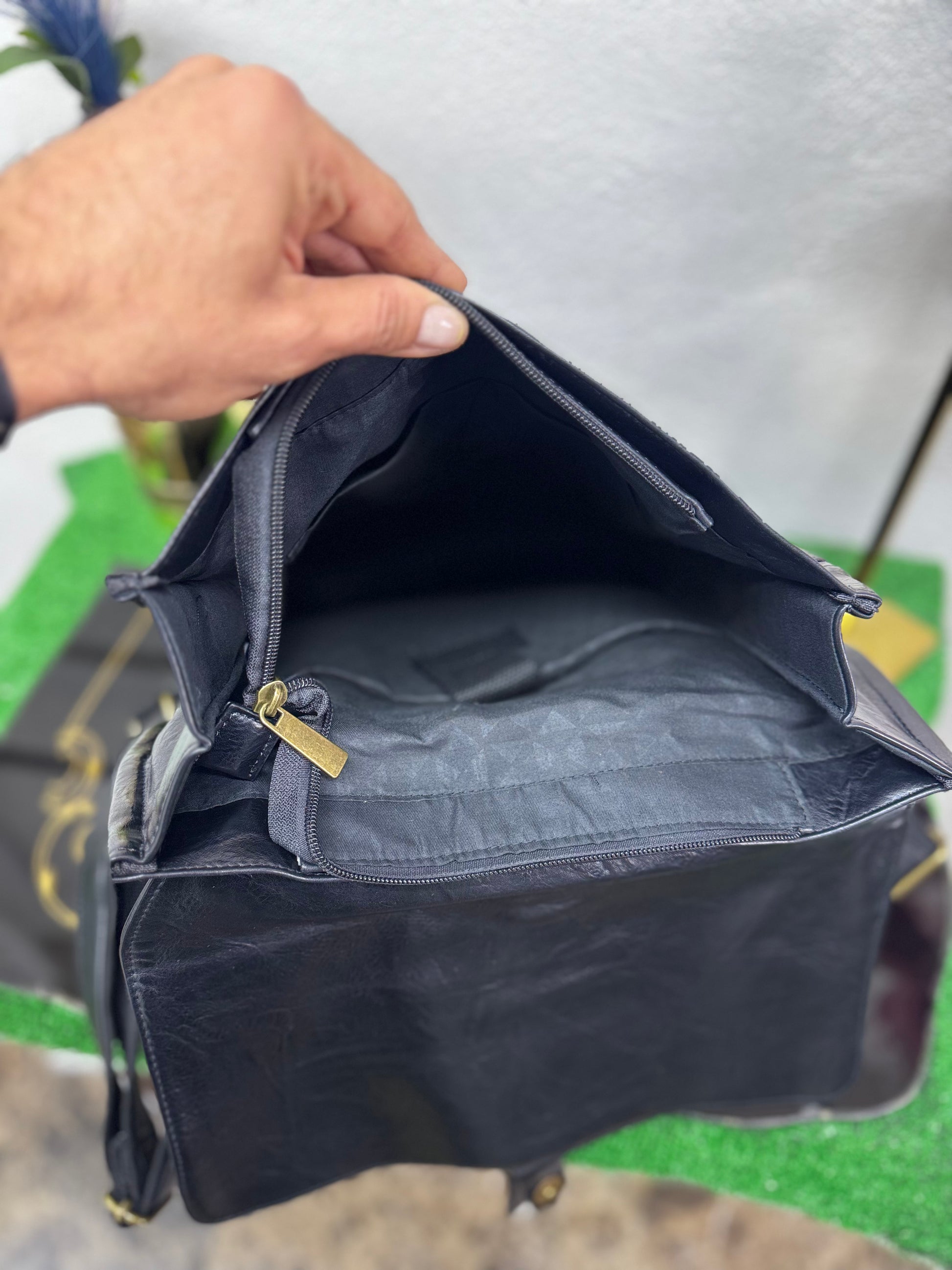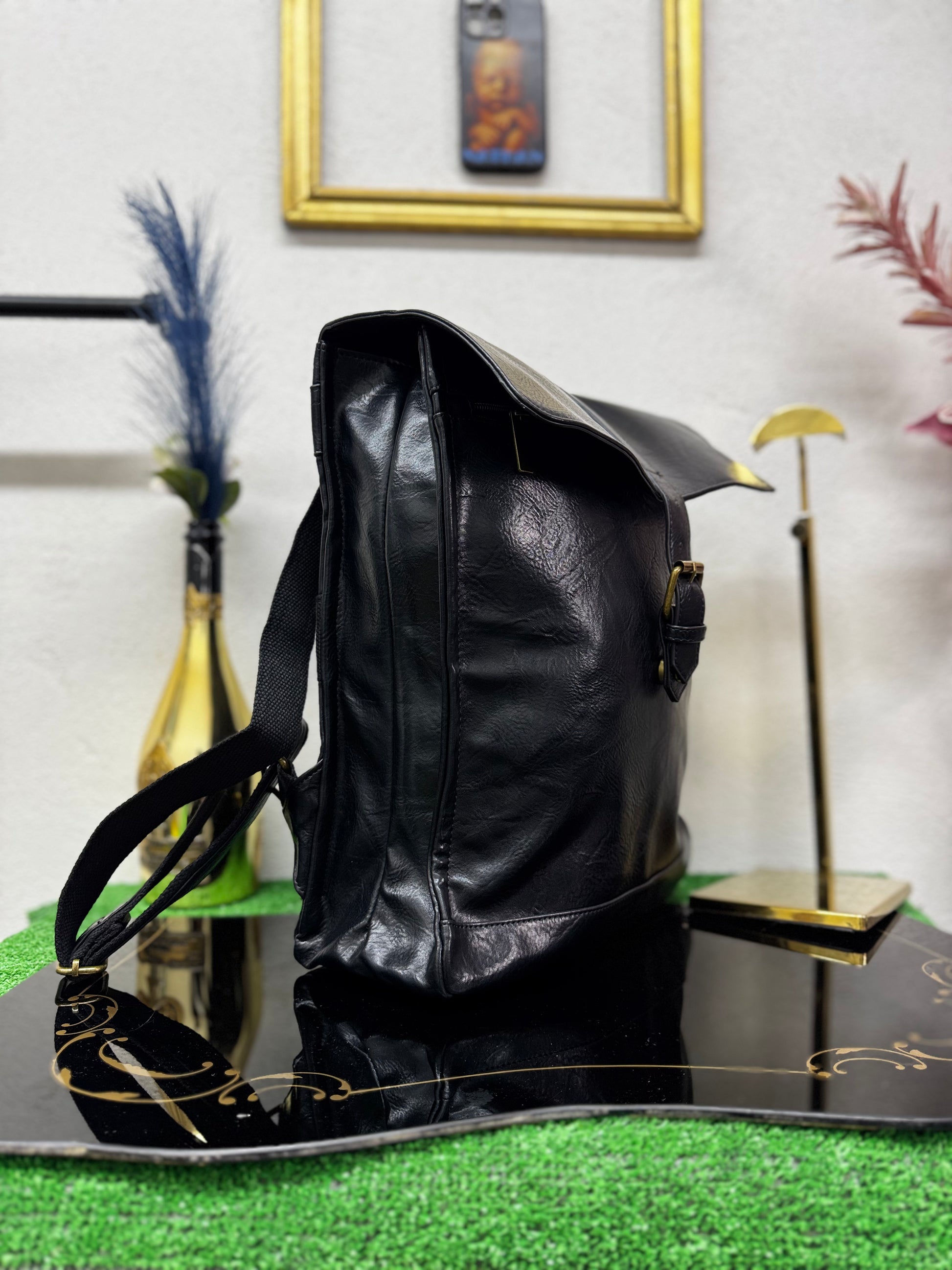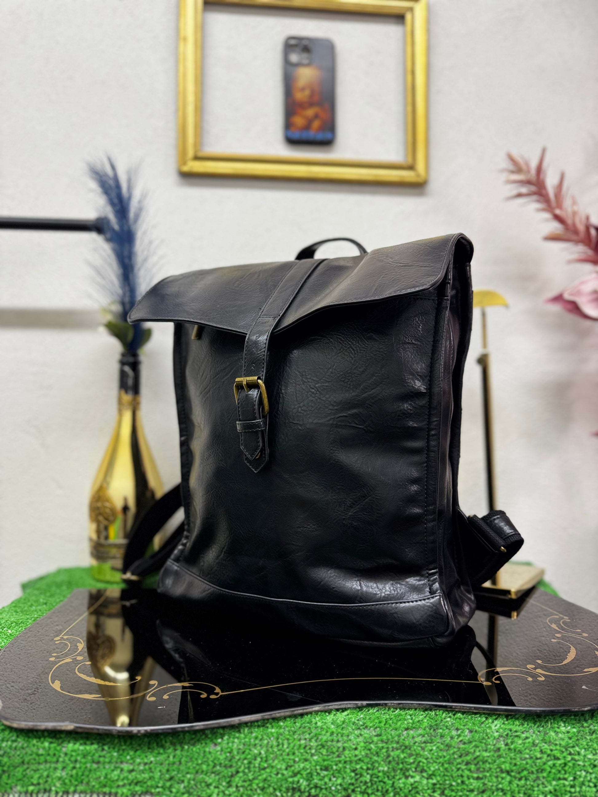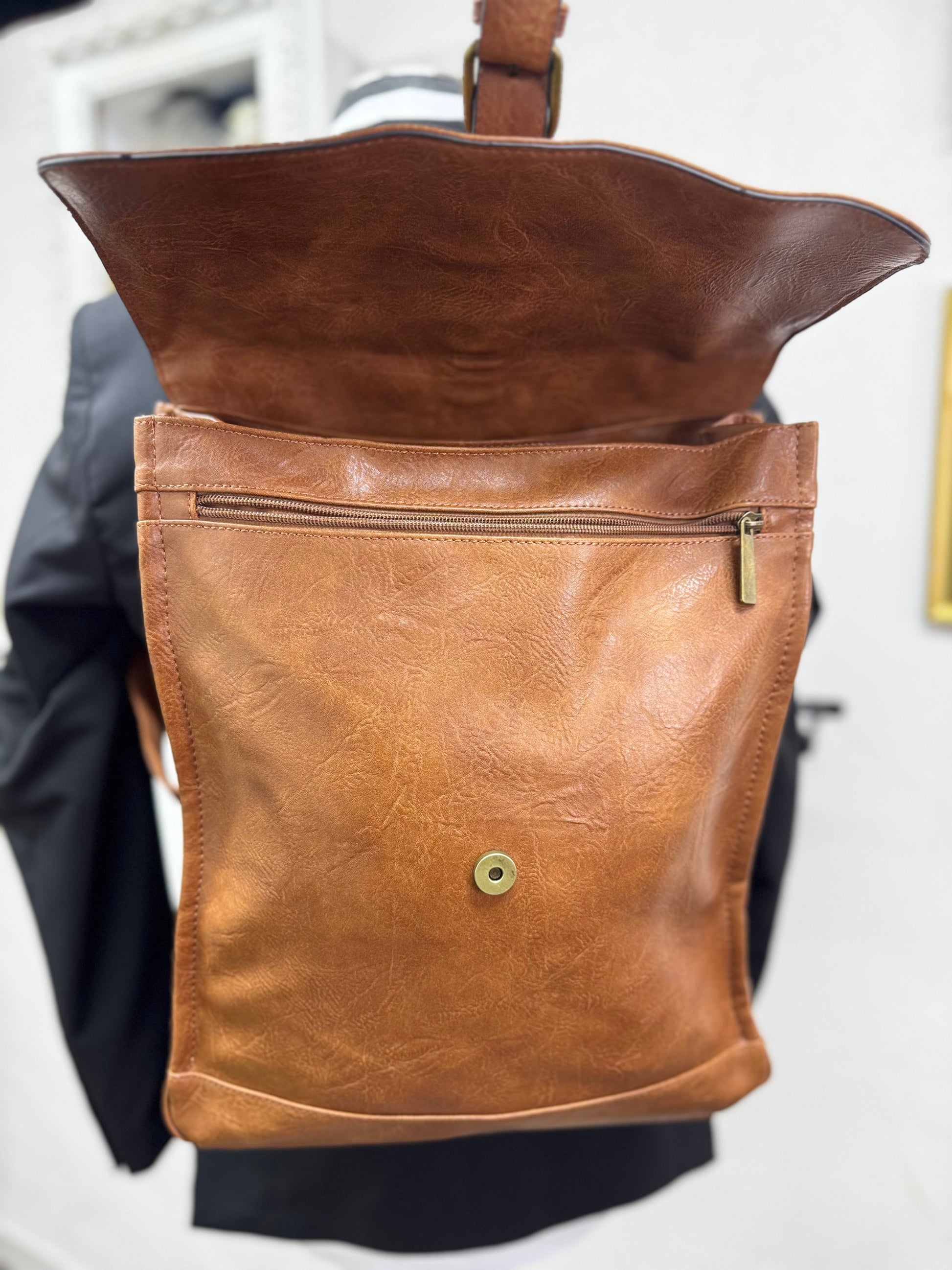 Realizzato in ecopelle morbida ma strutturata, presenta una linea verticale solida e compatta, valorizzata dalla patta superiore con fibbia che caratterizza il design e protegge il contenuto. La chiusura a zip interna aggiunge sicurezza, rendendo lo zaino adatto all’uso quotidiano, al lavoro e agli spostamenti urbani.